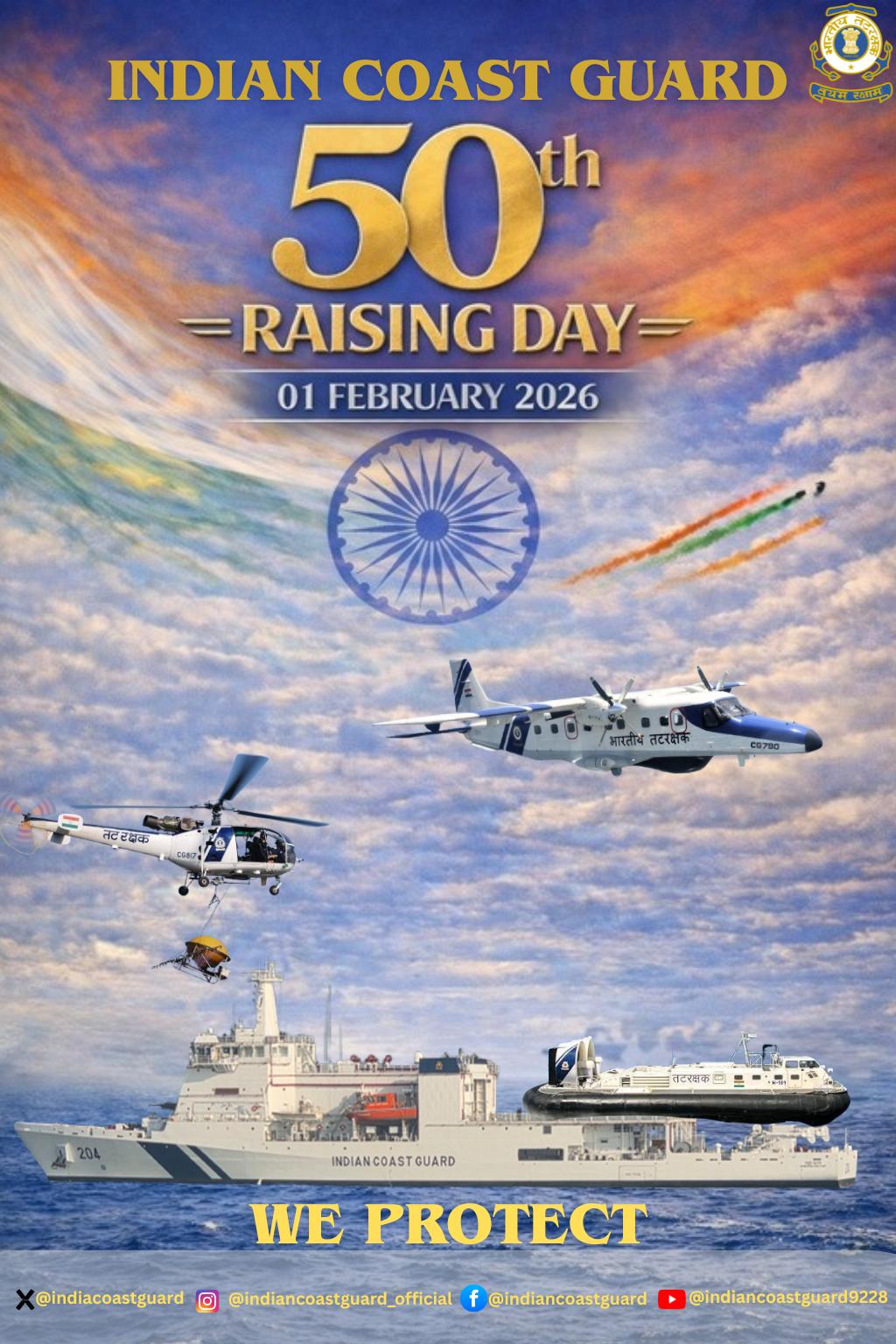 The Indian Coast Guard (ICG) will commemorate its 50th Raising Day on February 1, marking five decades of service in safeguarding the nation’s maritime interests and coastal security.